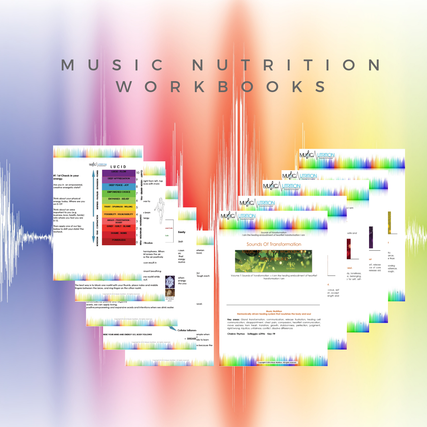 Over 8 hours of 6 Volumes of Music Nutrition including a 15 min, 30 min and 70 min soundtrack for your convenience to use at various times.